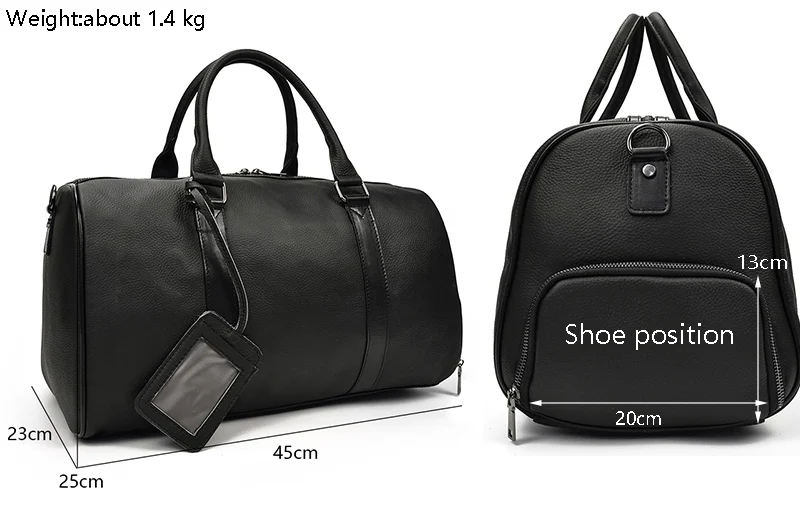 SPECIFICATIONSBrand Name: LuufanCN: GuangdongClosure Type: ZipperGender: MenGenuine Leather Type: Cow LeatherHardness: HARDHave Drawbars: NoHigh-concerned chemical: NoneItem Height: 25Item Length: 45Item Type: travel bagsItem Weight: 1.3Item Width: 23Main Material: Genuine LeatherMaterial Composition: Natural cowskinModel Number: LXB45LIZIWENOccasion: VersatileOrigin: Mainland ChinaPattern Type: SolidStyle: CasualTravel Bag: Travel Duffle Black Brown Black Brown