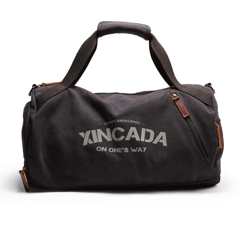 Male Large Capacity Canvas Travel Bags Men Fitness Sports Training Handbag With Shoes Pocket Black Khaki Shoulder Bag XA32M